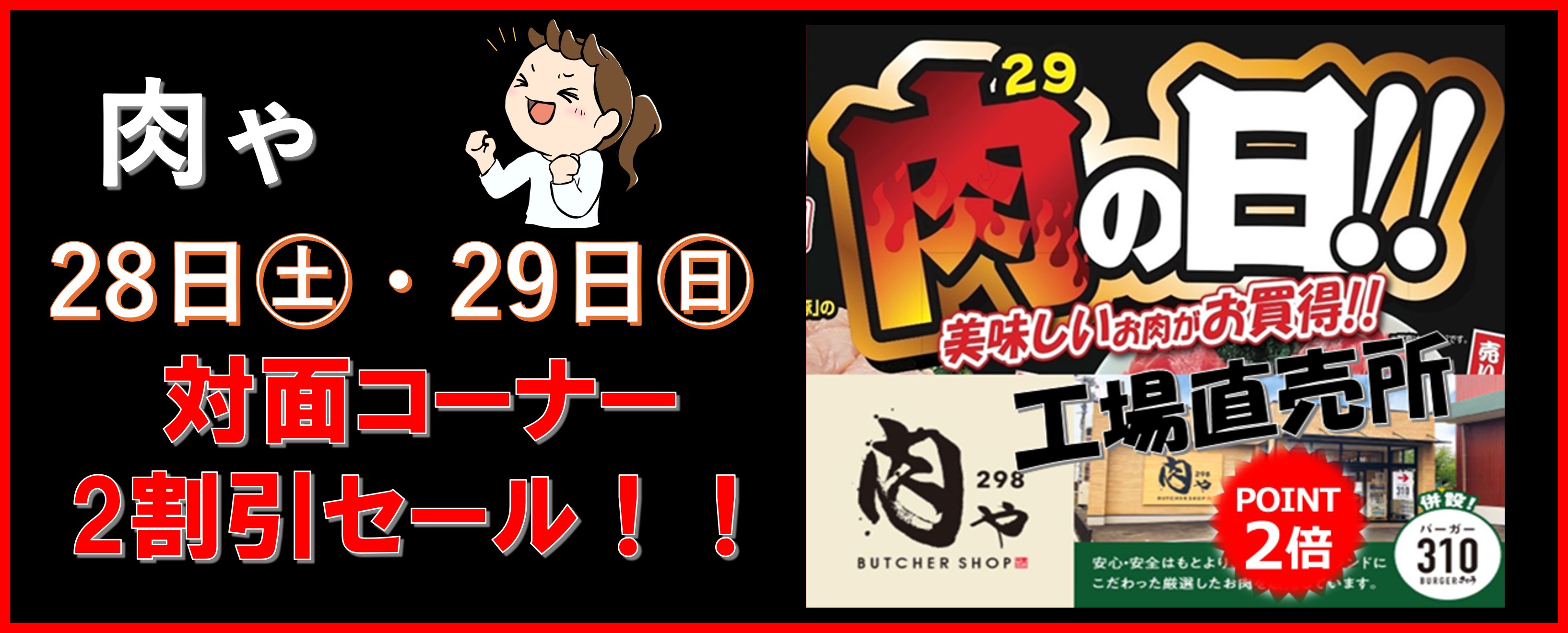 - 工場直売所「肉ゃ」の「肉の日」‼今月は28日(土)、29日(日)の2日間開催‼