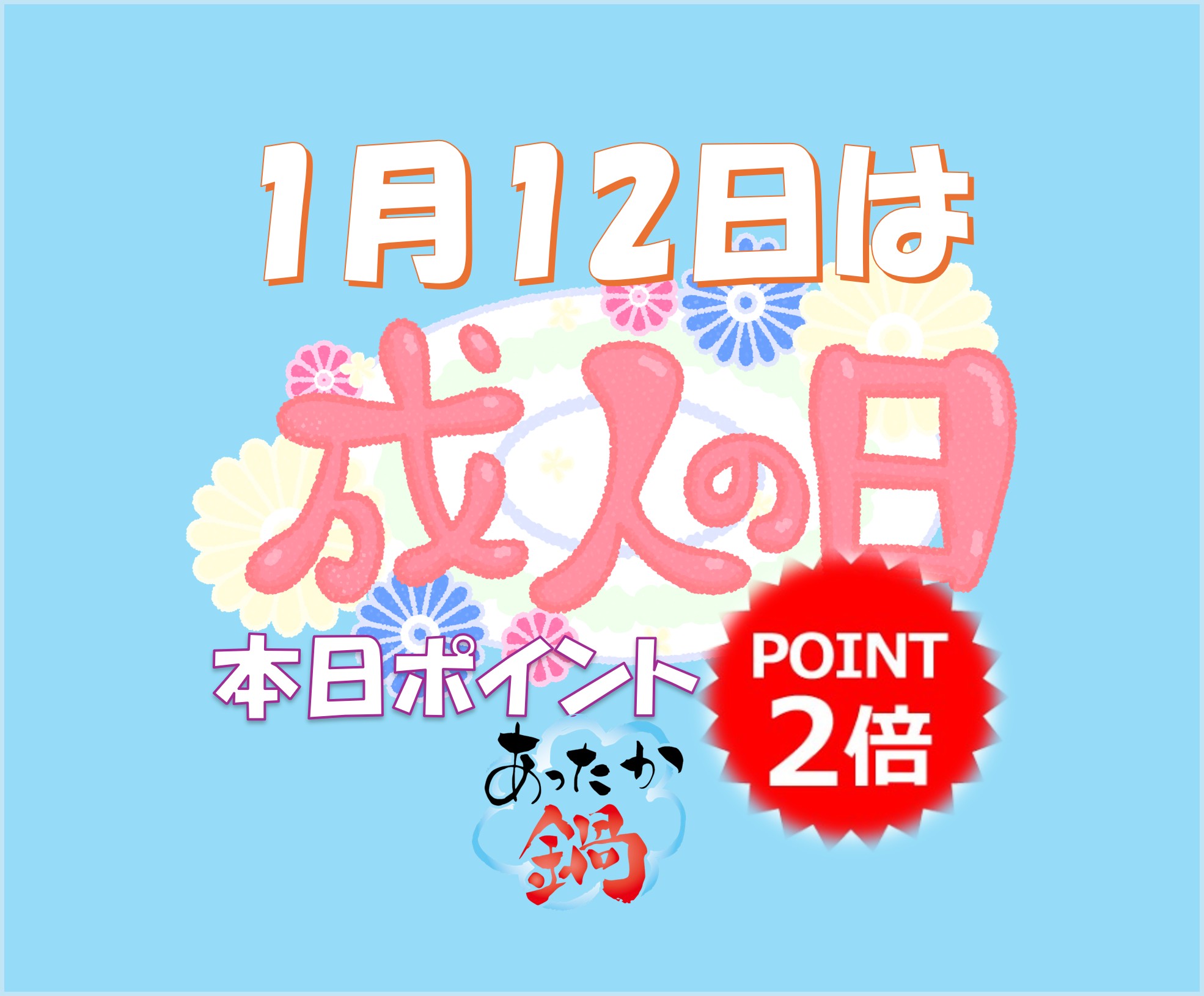 - 1/10㊏ ポイント2倍デー!✌ 今週は鍋MENU & 🎌成人の日お祝い特集!!