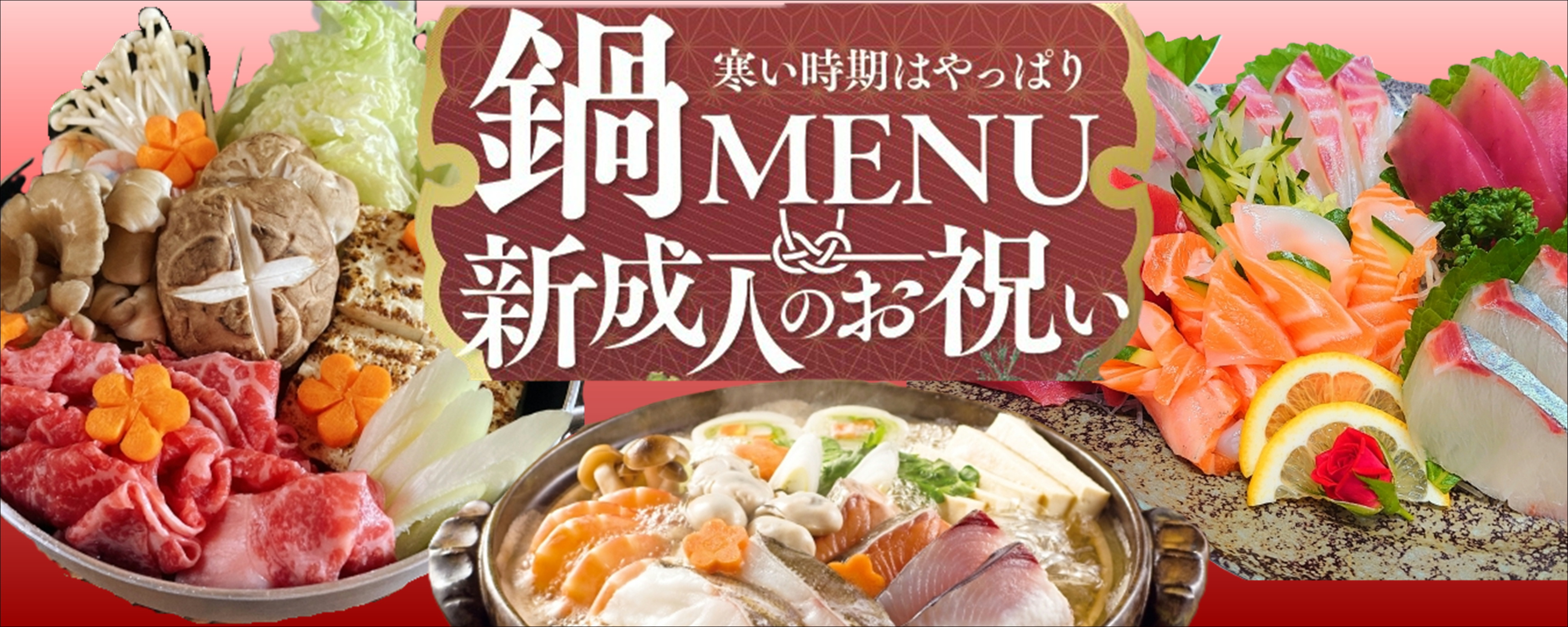 - 1/8㊍ 鍋MENU&新成人のお祝い~恵方巻のご予約承ります!