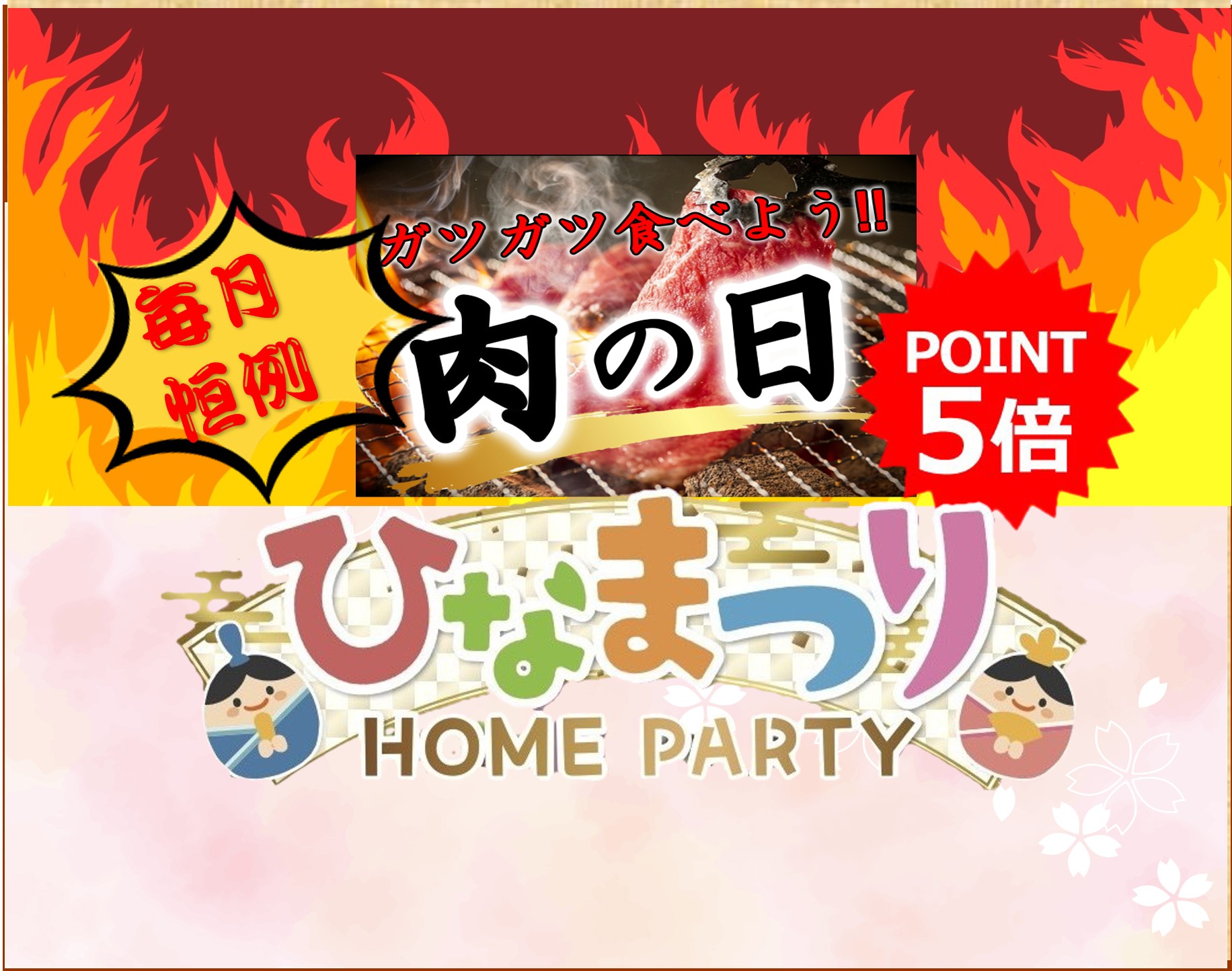 - 2/28(土)はお買い得なスペシャルデー♪ポイント5倍!本日「肉の日」開催‼~今週はひなまつり、HOME PARTY