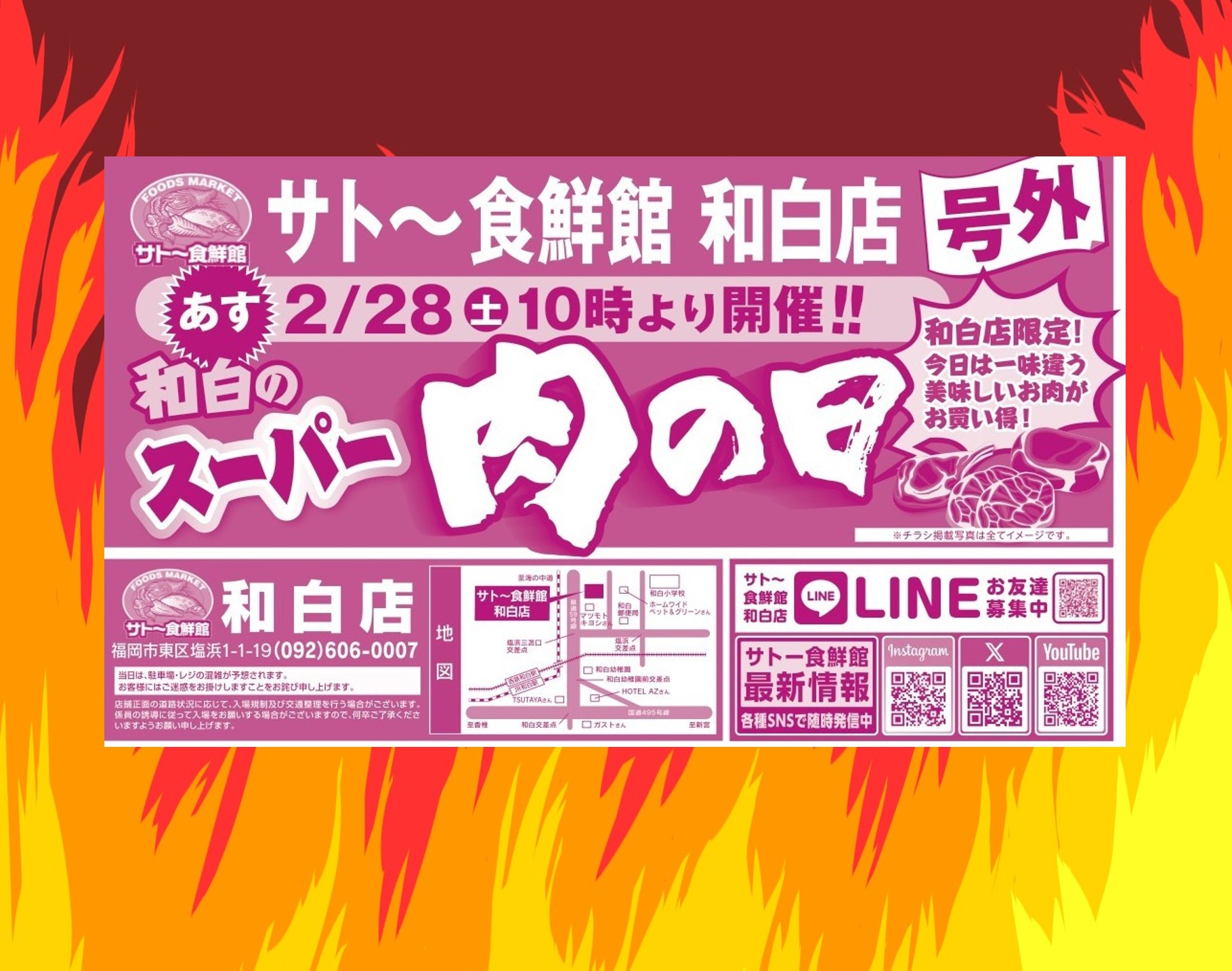 - 和白店号外!! ※明日2/28(土)10時~ 『スーパー肉の日』 開催!! ヾ(o´∀`o)ノ♪
