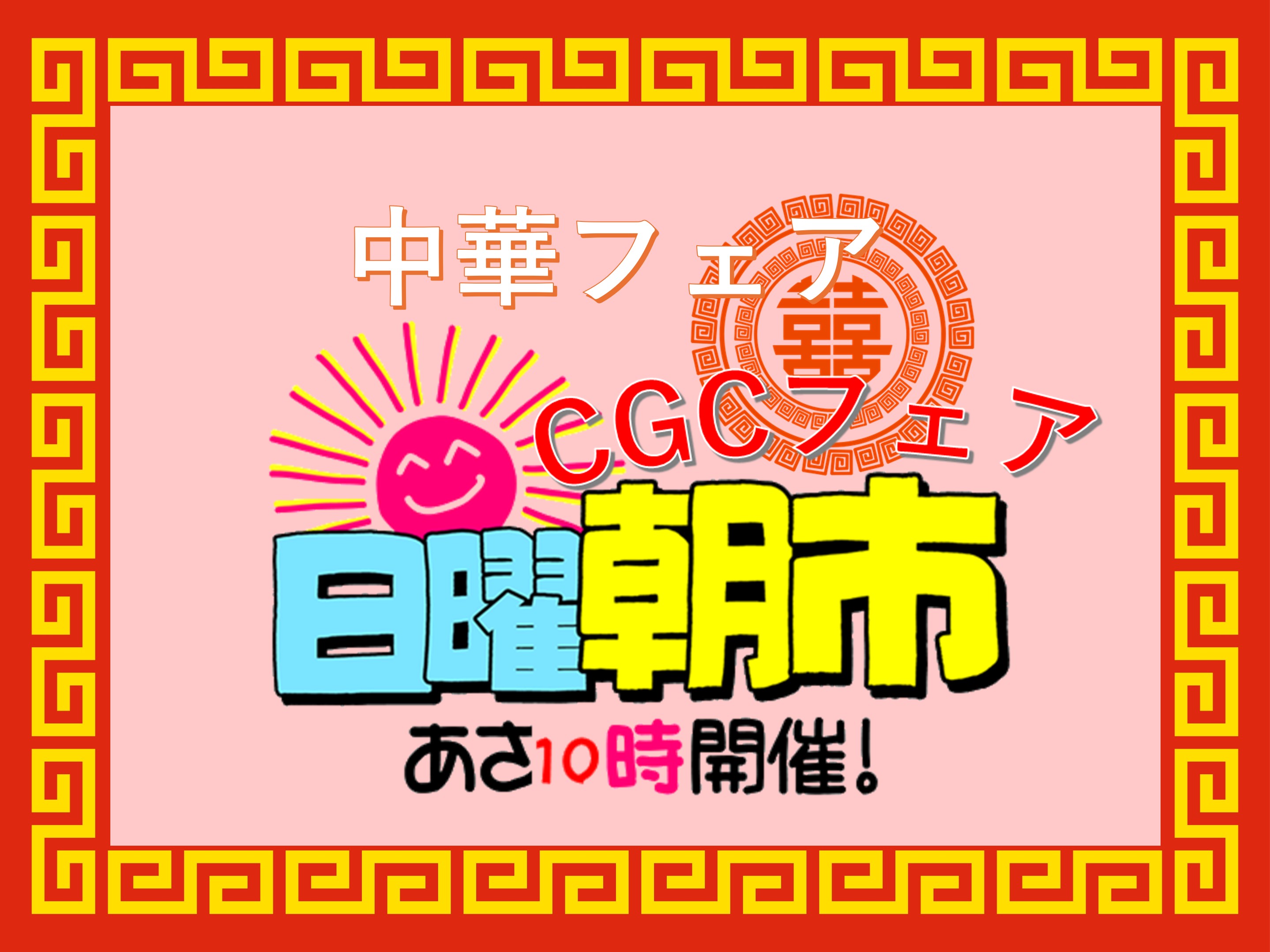 2/22㊐ 恒例の日曜朝市(正午まで2時間タイム)~中華フェア&CGCフェア、お値打ち品がズラリ!!