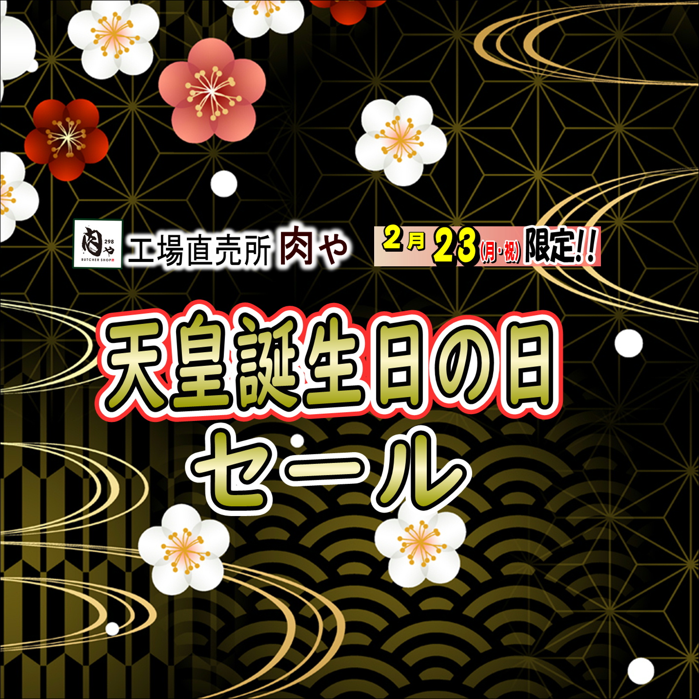 - 工場直売所「肉ゃ」2/23(月・祝)限定!「天皇誕生日の日セール‼」開催!!