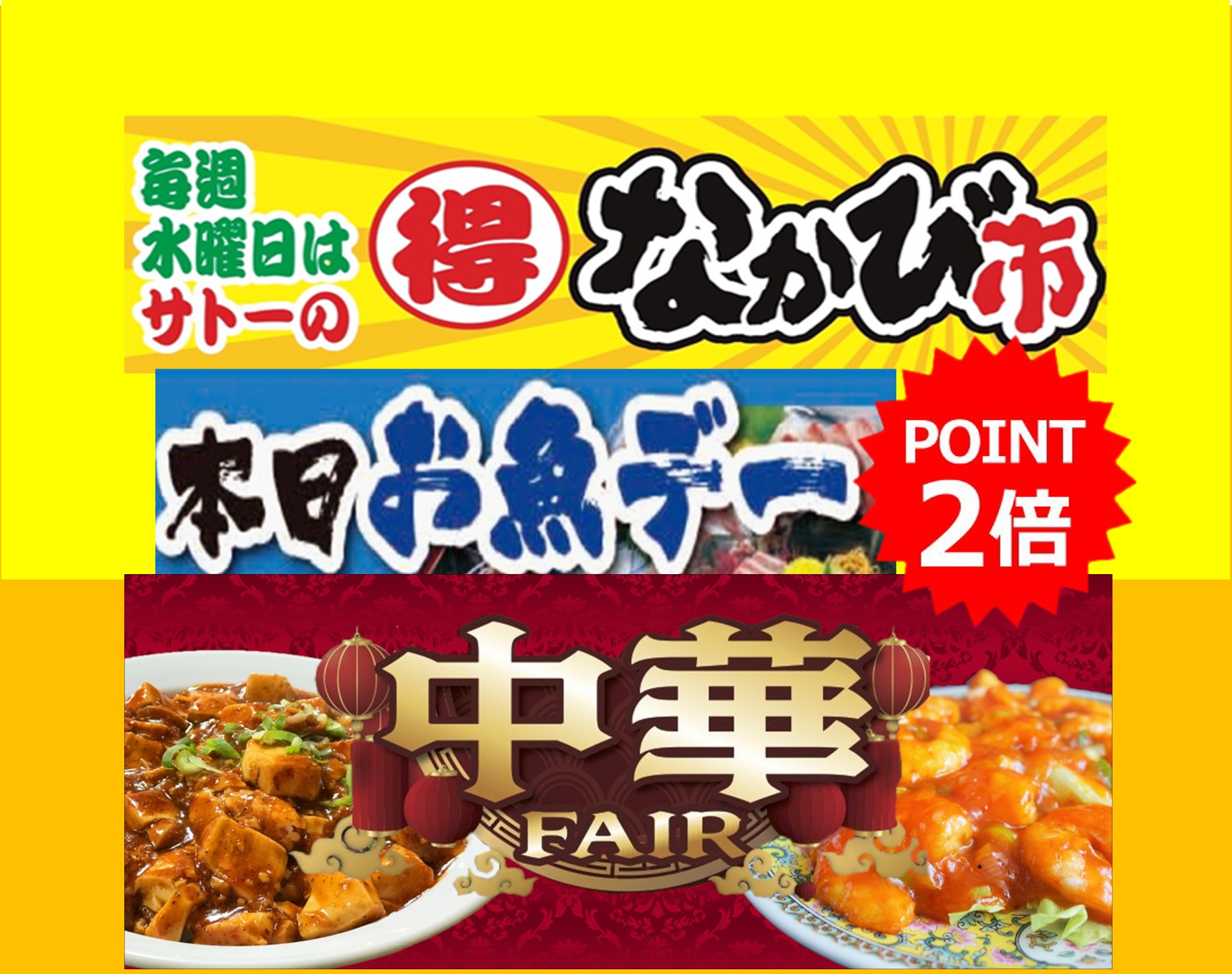 - 2/18(水)なかび市&お魚デー、ポイント2倍!~中華FAIR