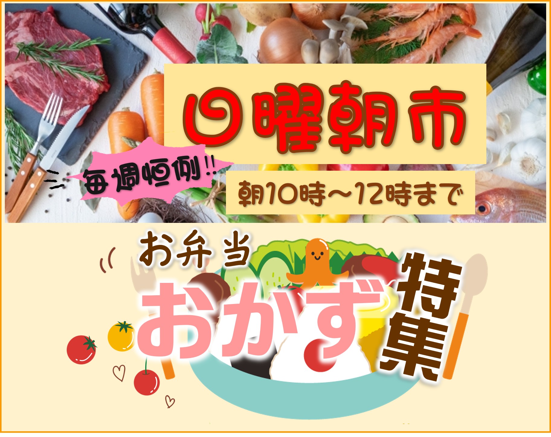 4/12㊐はサトー食鮮館「日曜朝市🌞」開催‼~今週はお弁当のおかず特集