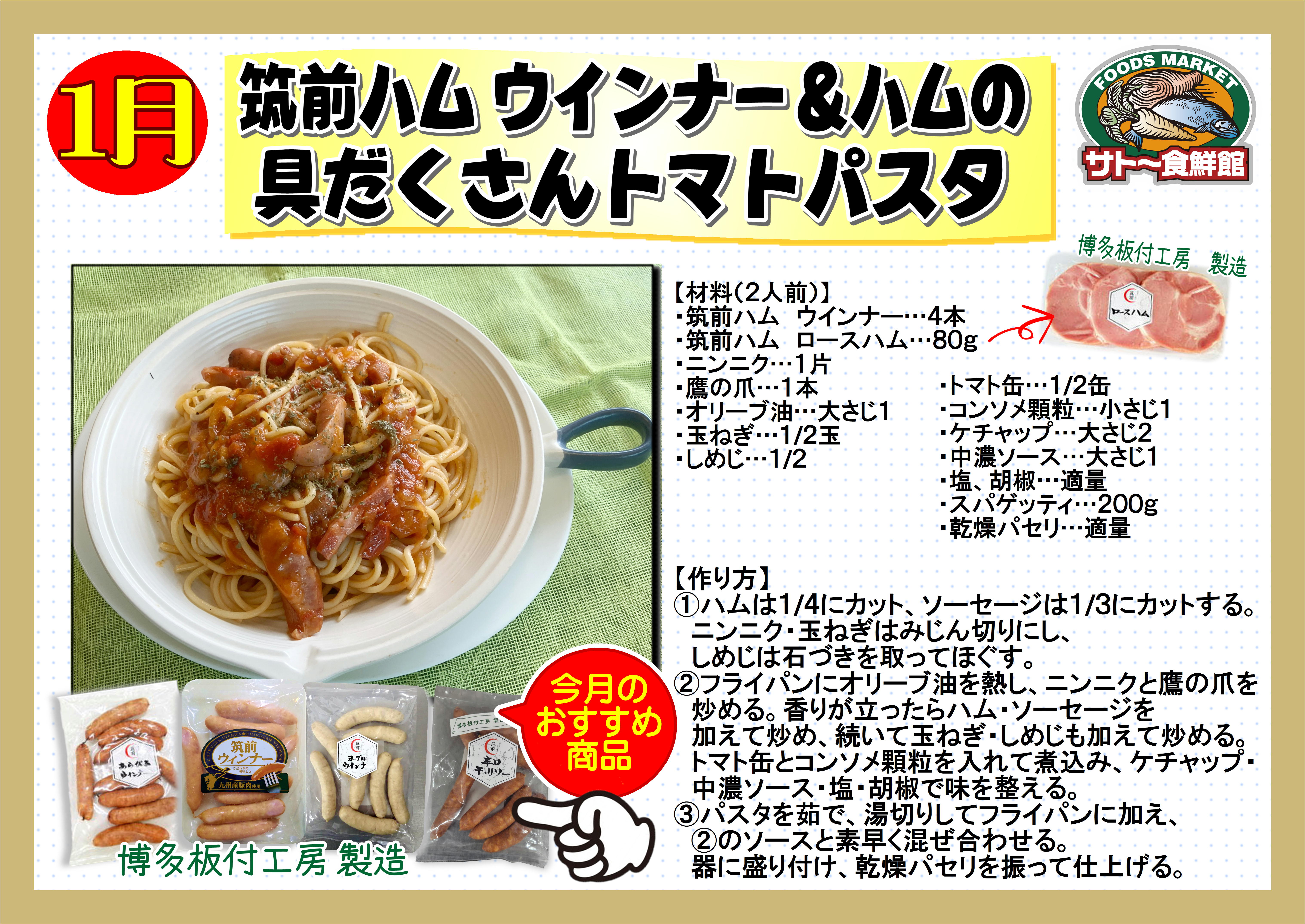 筑前ハムウインナー&ハムの具だくさんトマトパスタ