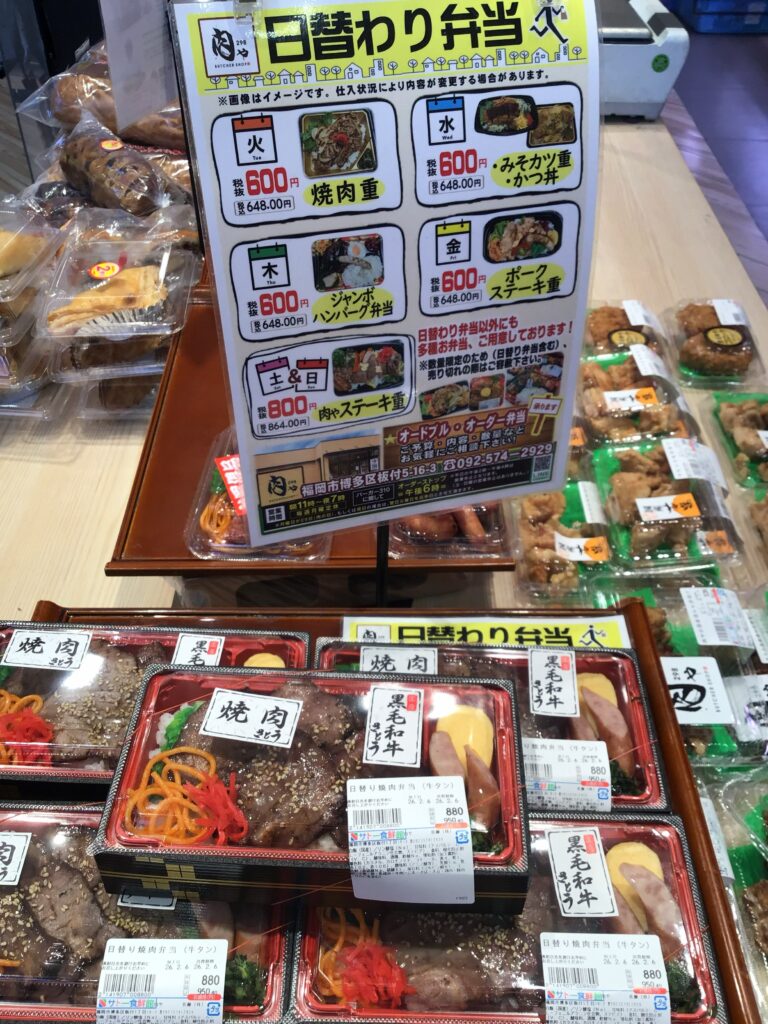 (注)▼写真は過去の「肉ゃ市」の肉ゃ弁当です。お弁当や総菜の内容はその日によって変わります。