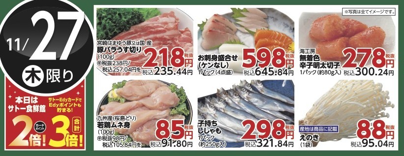 サトー食鮮館Edyカード会員様価格 税抜各598円(税込各645.84円)