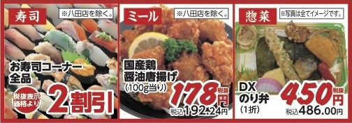 ✅お寿司コーナー全品 税抜表示価格より2割引き!!※八田店を除く