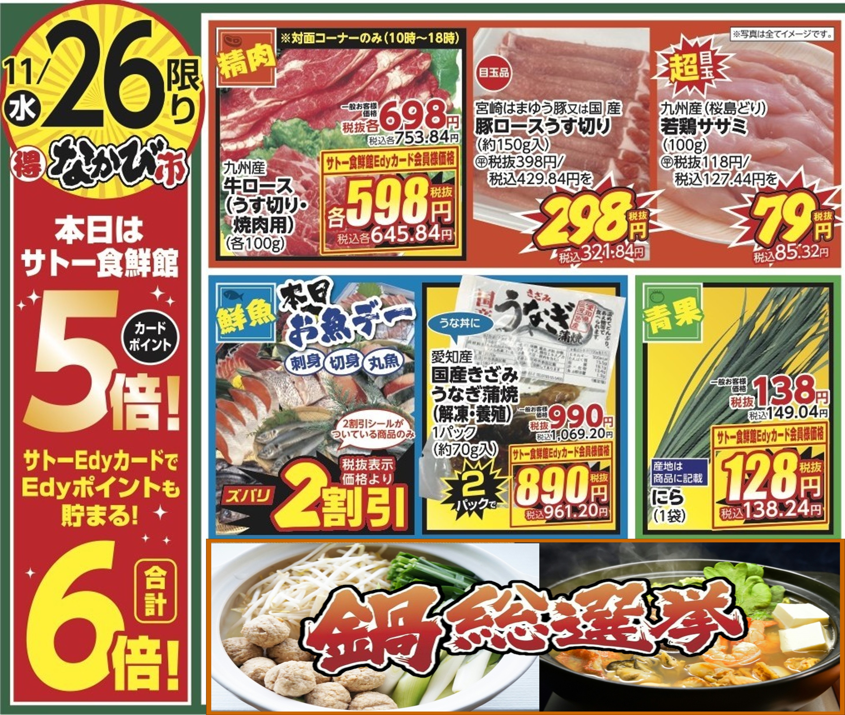 11/26(水)なかび市&お魚デー開催!!~鍋総選挙開催!各部門バイヤー厳選!勝利を掴むのはどの部門?~