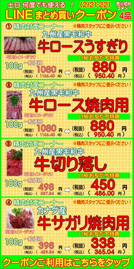 詳しくは精肉対面コーナーの職員にお尋ねください。