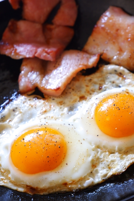 厚切りベーコンと目玉焼き♪