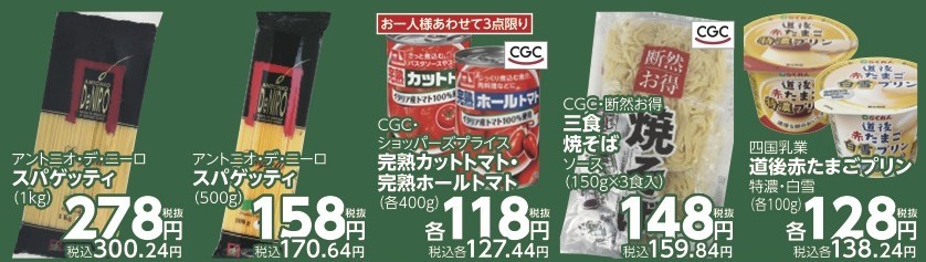 ✅CGC・ショッパーズプライス 完熟カットトマト・完熟ホールトマト(各400g)税抜各118円(税込127.44円) お一人様あわせて3点限り