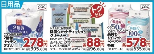 ✅CGC・ 断然お得 2倍増キッチンタオル 100カット(4ロール)税抜278円(税込305.80円)