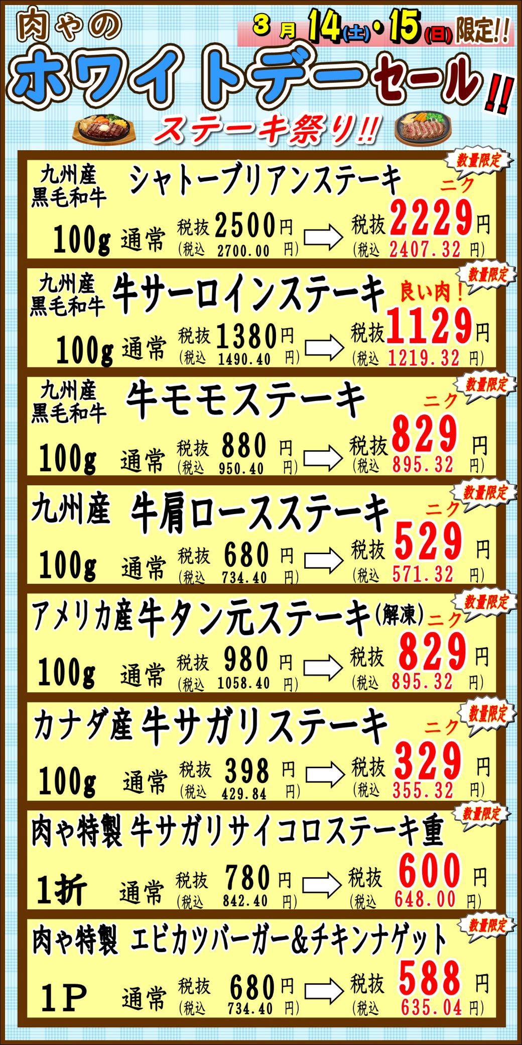 肉ゃのホワイトデーセール!開催!!ヾ(*´∀`*)ノ