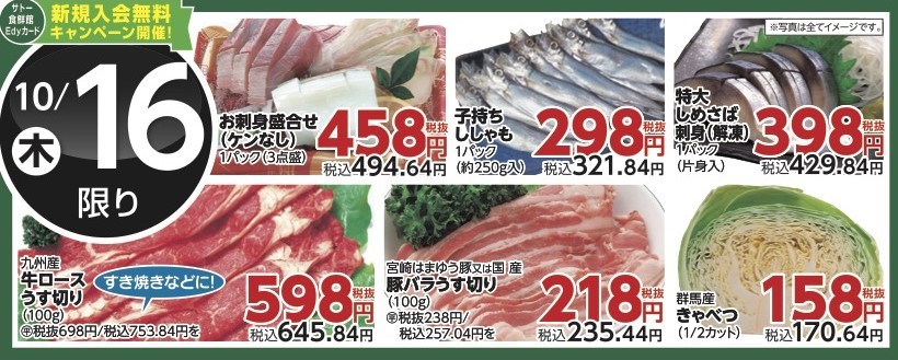 10/16(木)~10/21(火)はサトー食鮮館Edyカードが入会無料に...!!