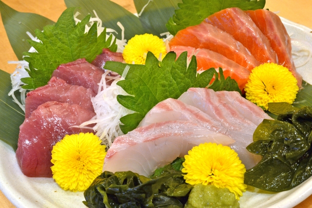 ✅サーモンたっぷりお刺身盛合せ 1パック(4点盛)税抜990円(税込1,069.20円)