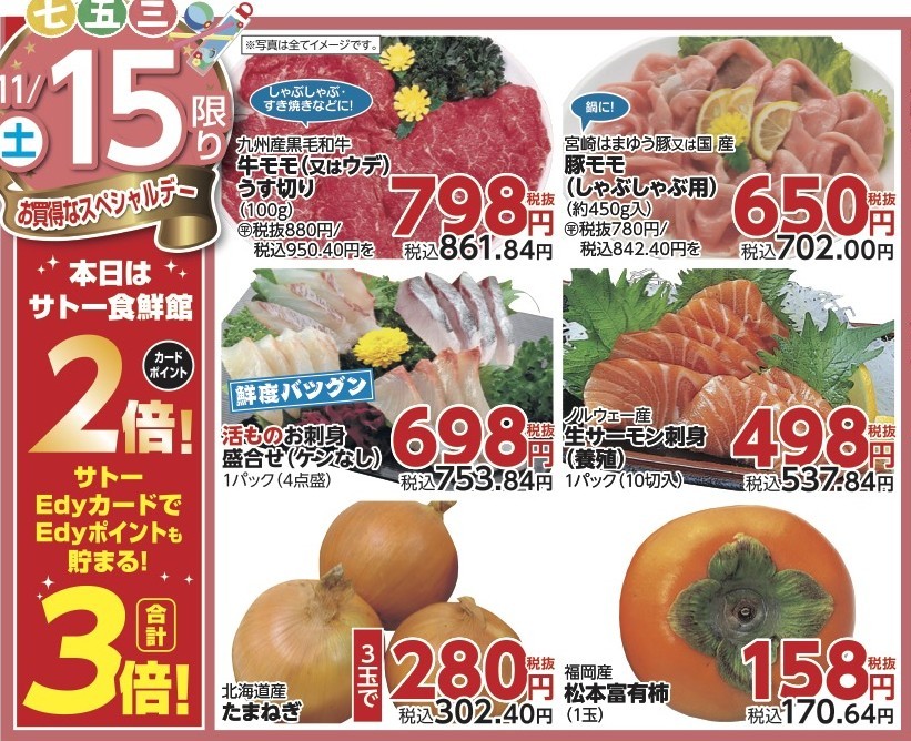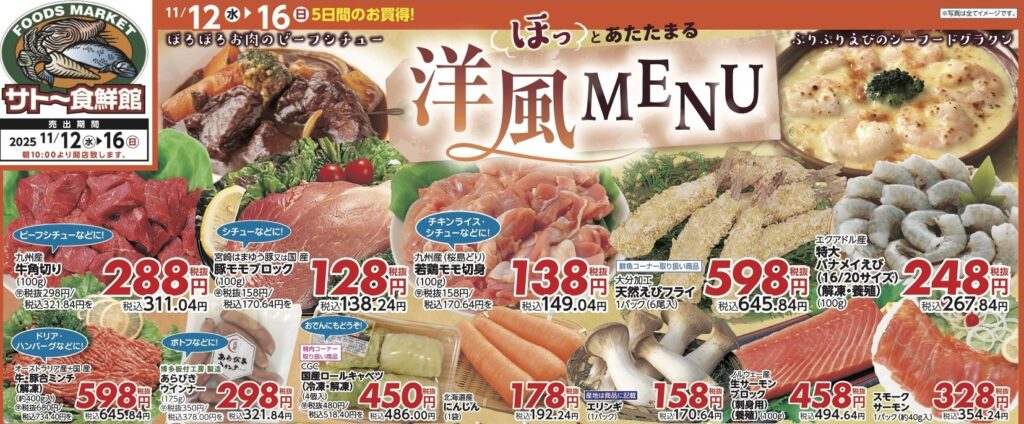 11/15(土)は祝!七五三~お買い得なスペシャルデー♪~今週はほっとあたたまる洋風MENU