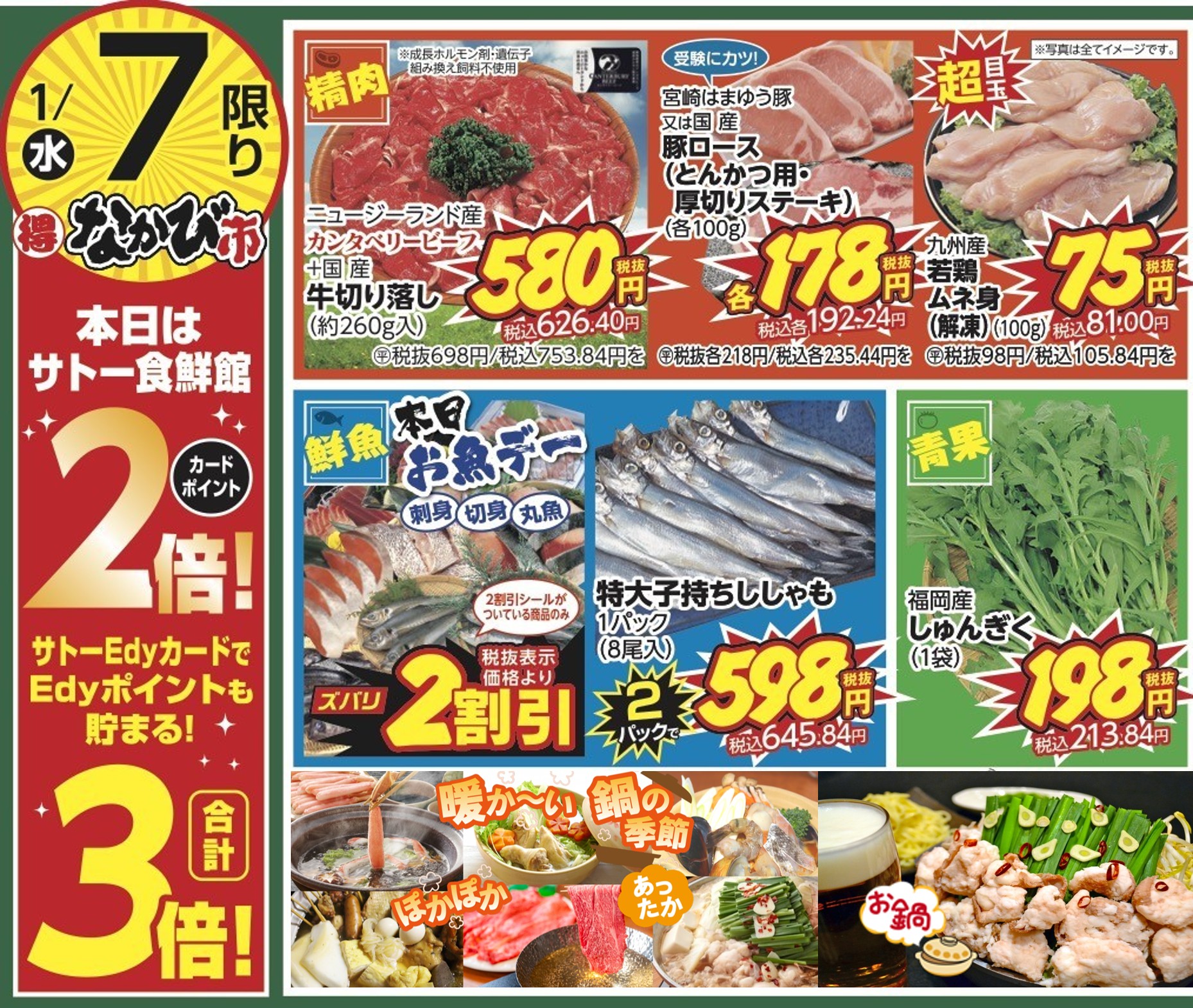1/7(水)は今年最初のなかび市&お魚デー!~寒い時期はやっぱり鍋MENU、新成人のお祝い~
