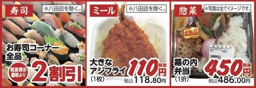 ✅お寿司コーナー全品 税抜表示価格より2割引!! ※八田店を除く
