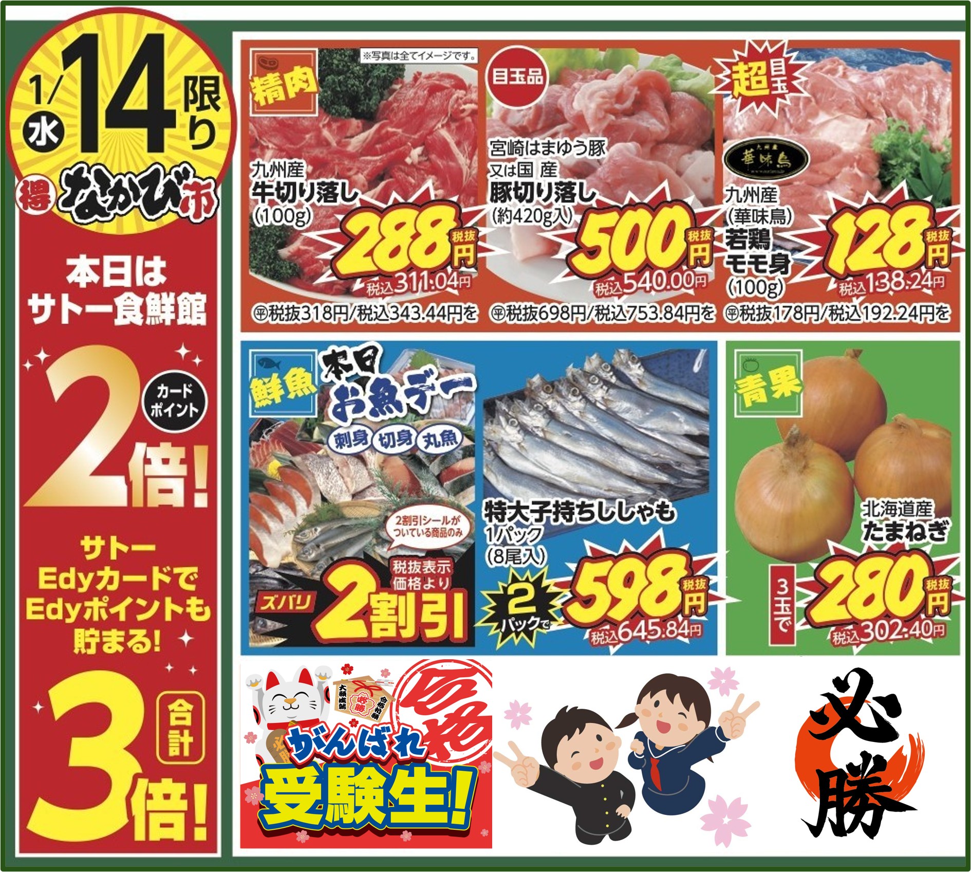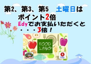 サトー食鮮館Edyカードなら事前にチャージしレジでお支払いいただくと、サトーポイント+Edyポイントが付与されますので便利で断然お得!!