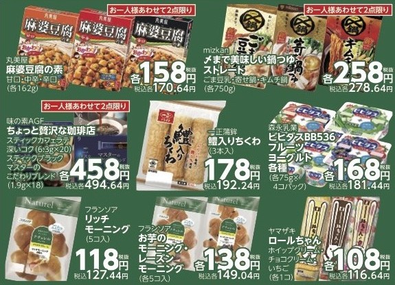 ✅丸美屋 麻婆豆腐の素 甘口・中辛・辛口(各162g)税抜各158円(税込各170.64円)お一人様あわせて2点限り