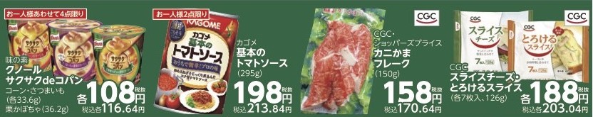 ✅CGC スライスチーズ・とろけるスライス(各7枚入、126g)税抜各188円(税込各203.04円)