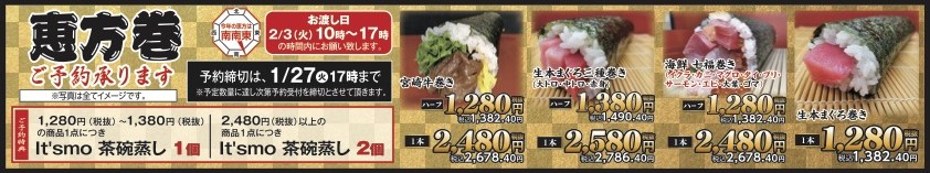 ◆恵方巻 ご予約承ります!! うれしいご予約特典あり!▼