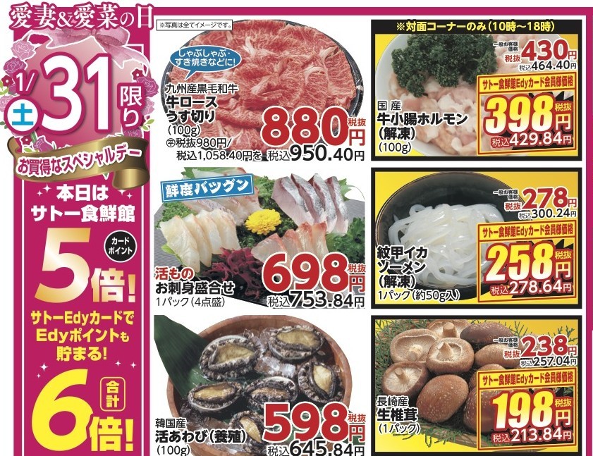 1/29(木)はサトー食鮮館の「肉の日」ポイントアップウィークで本日2倍!