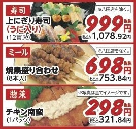 焼鳥盛り合わせ(8本入) 税抜698円(税込753.84円) ※八田店を除く