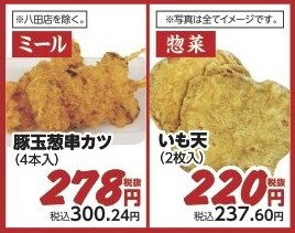 豚玉葱串カツ(4本入)税抜278円(税込300.24円)※八田店を除く