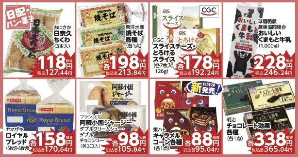 CGCスライスチーズ・とろけるスライス(各7枚入、126g) 税抜各178円(税込各192.24円)