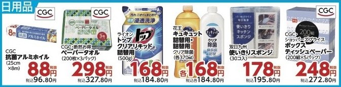 CGC・ショッパーズプライス ボックスティッシュペーパー(200組×5パック)税抜248円(税込272.80円)