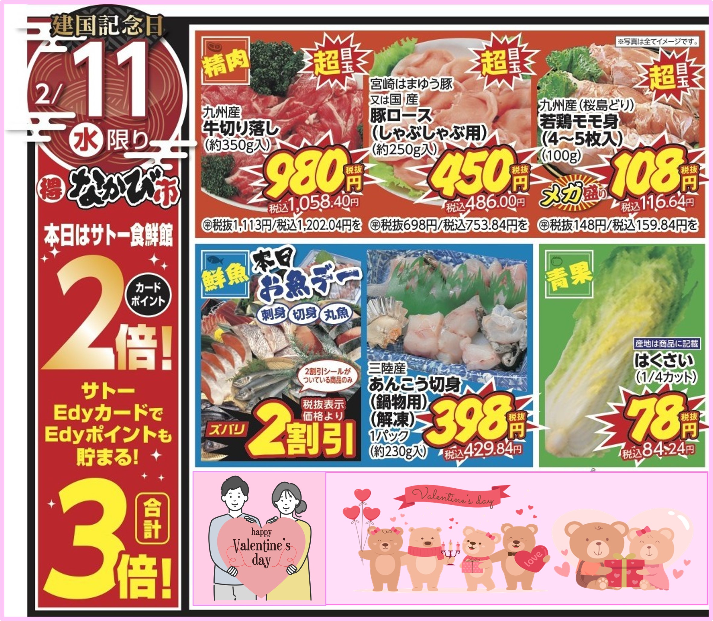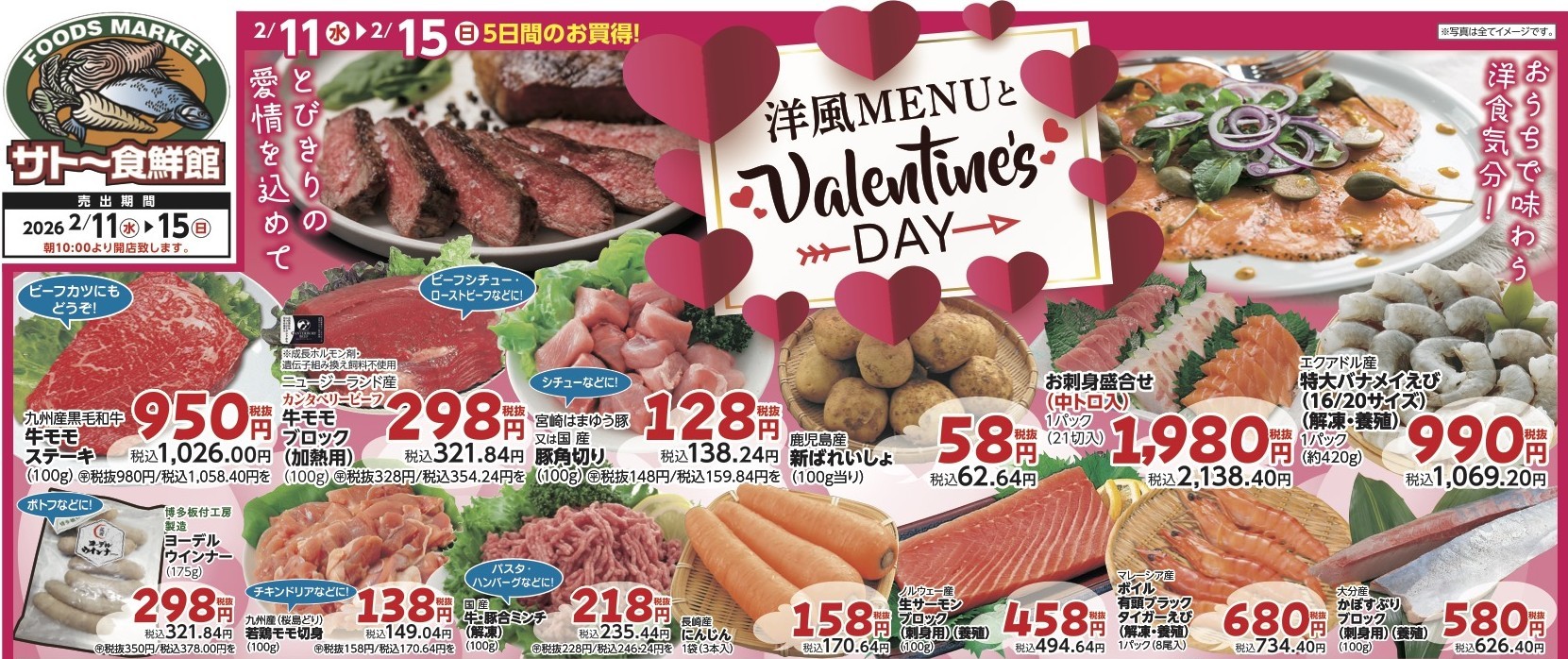 洋風MENUとValentine Day💖 2/11㊌なかび市&お魚デー&CGCフェア