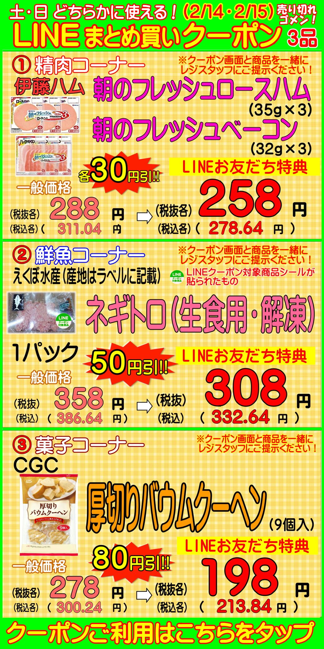 2/14(土)はお買い得なスペシャルデー♪ポイント2倍♪今週は洋風MENUとバレンタインデー💘特集+CGCフェア🎈