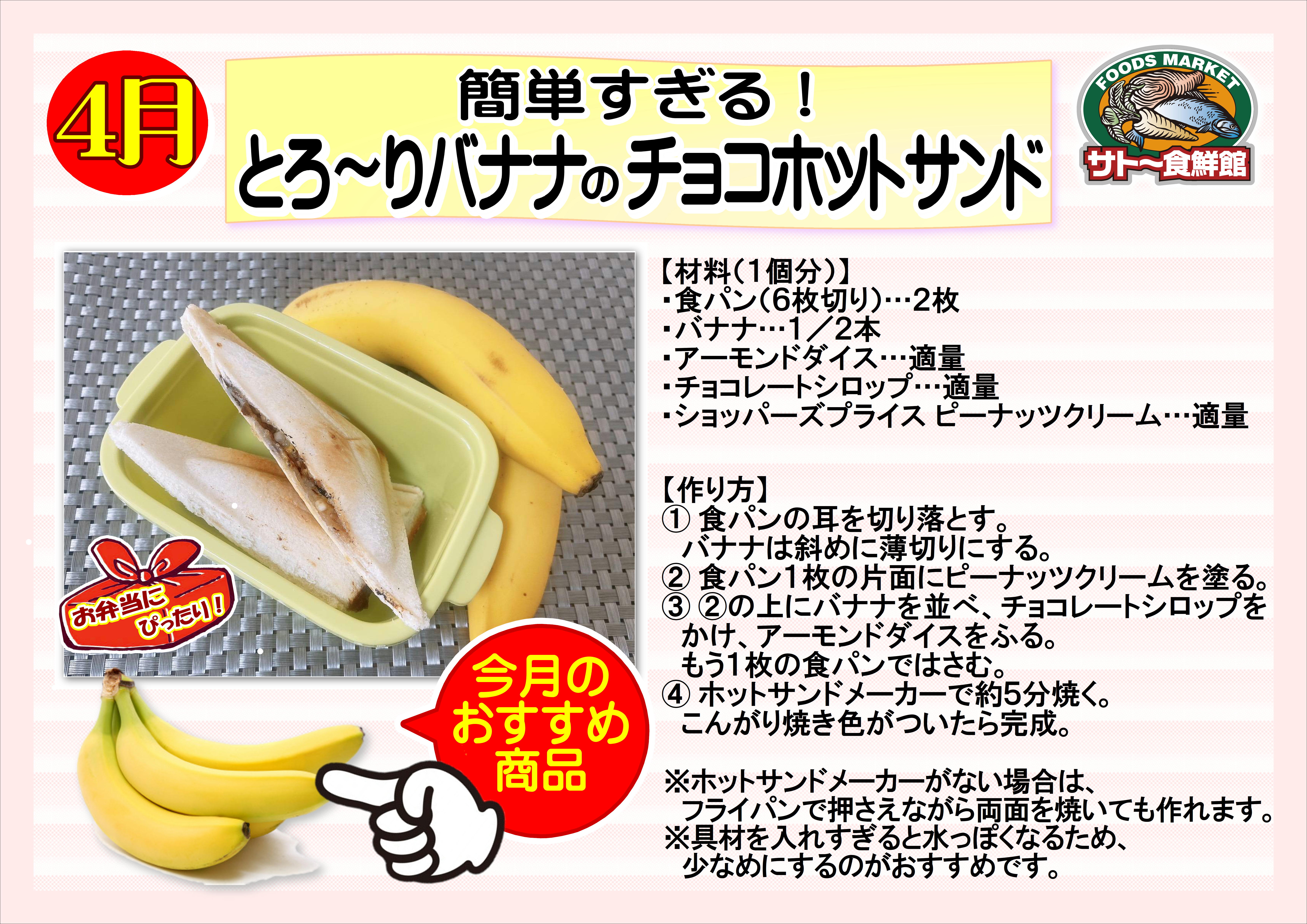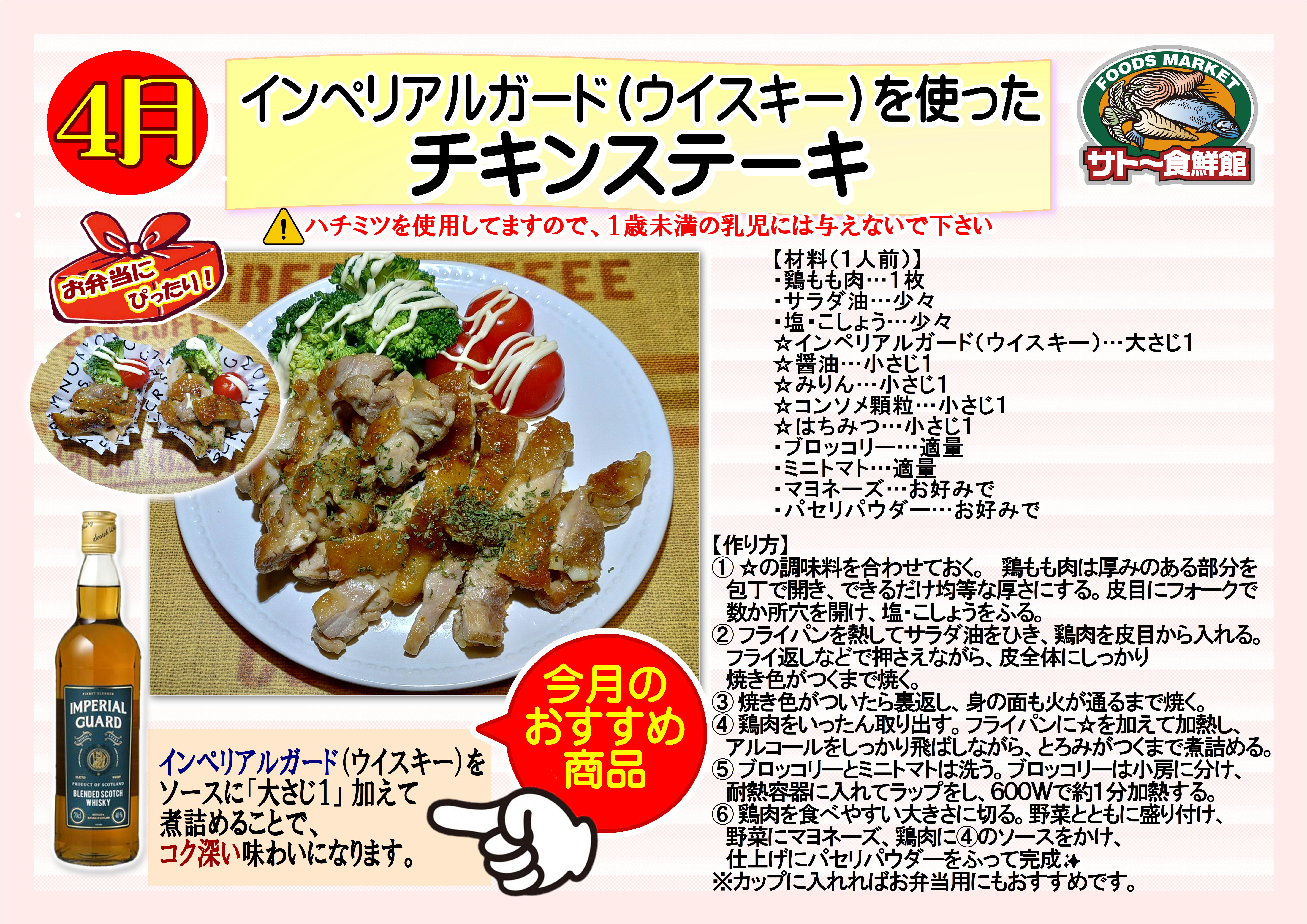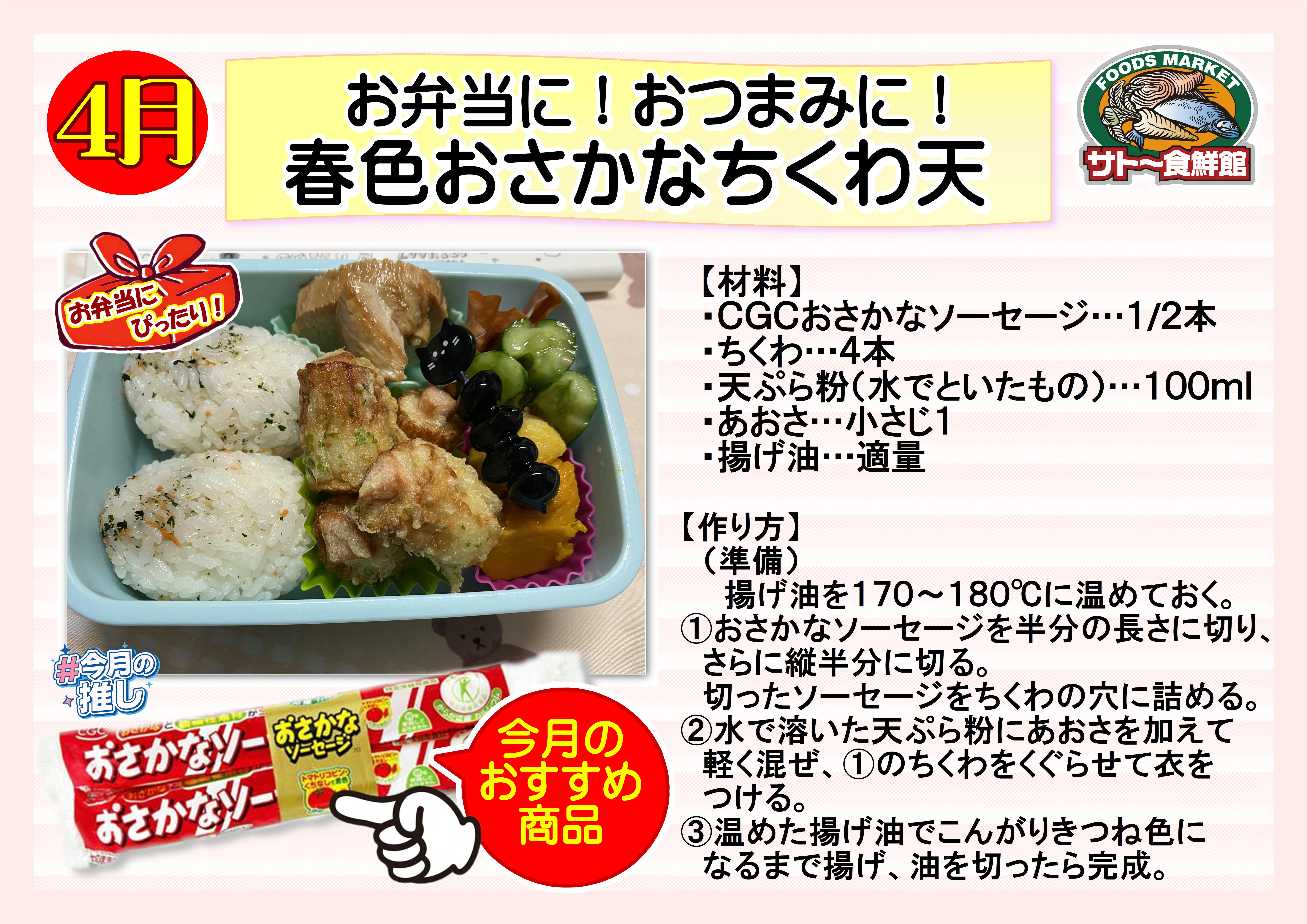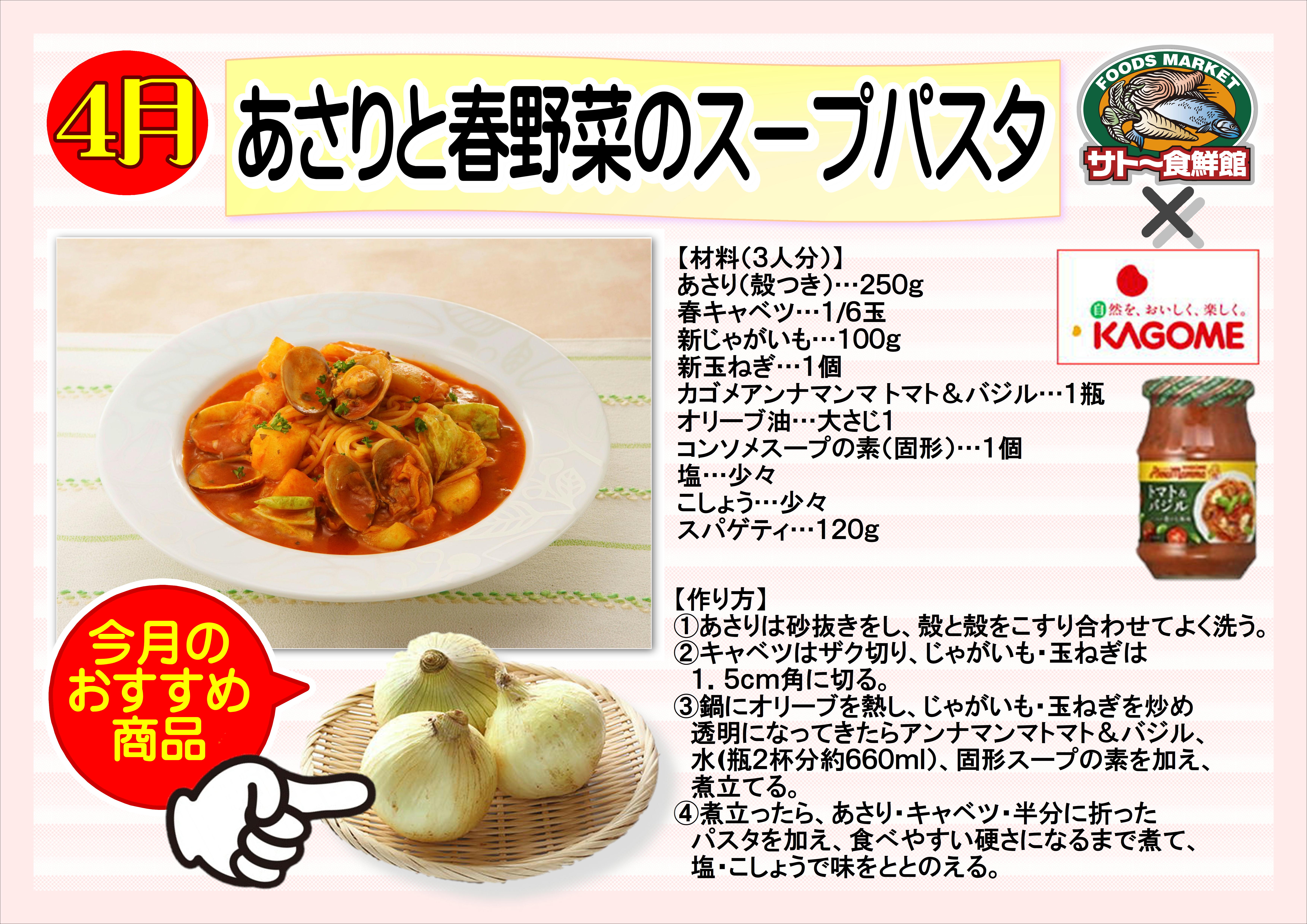 サトー食鮮館オリジナルレシピは、「今月のおすすめ商品」を使ったレシピを社員が考え、実際に作ったものを掲載しています(一部協力業者様提案レシピがあります)!