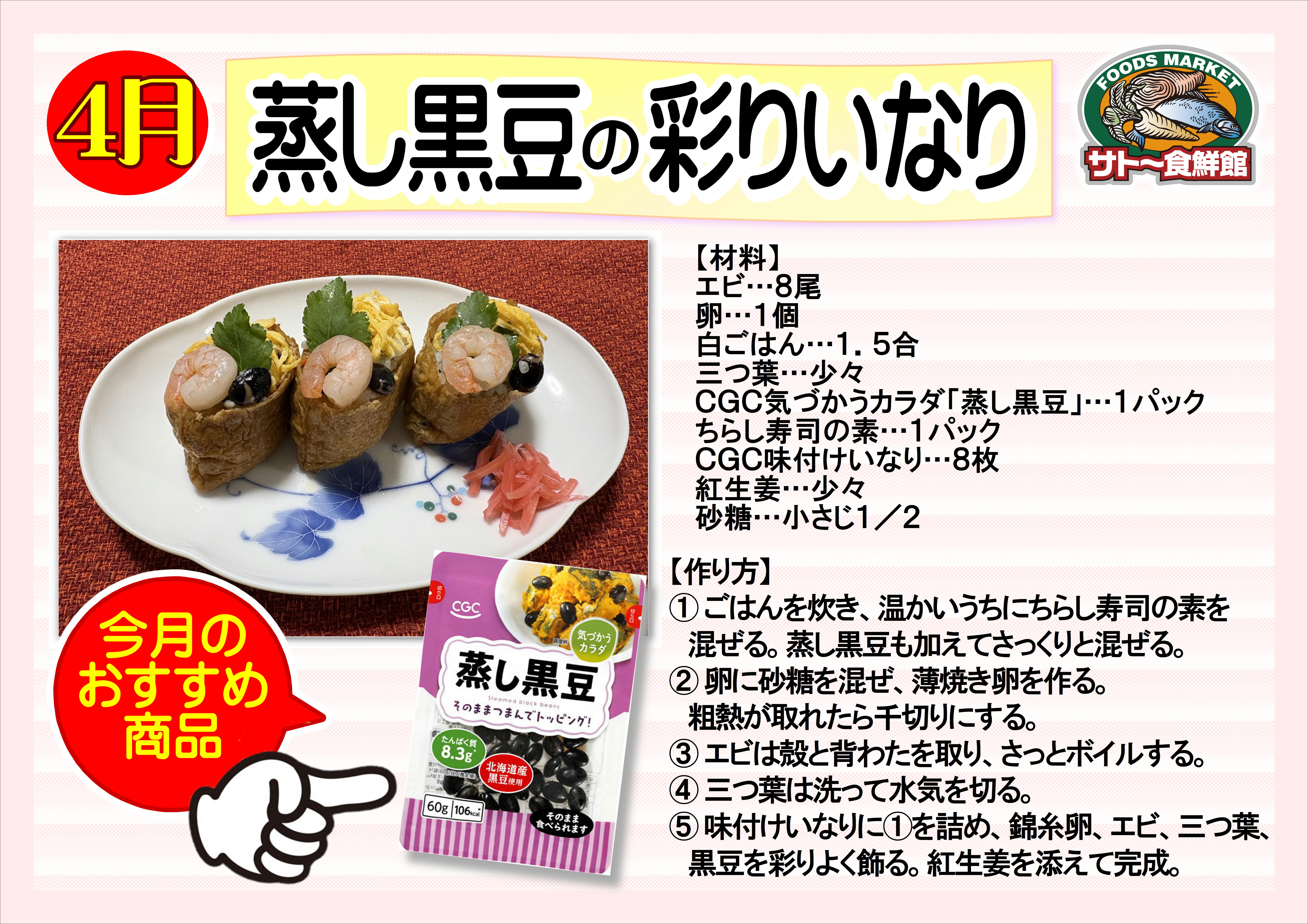 サトー食鮮館オリジナルレシピは、「今月のおすすめ商品」を使ったレシピを社員が考え、実際に作ったものを掲載しています(一部協力業者様提案レシピがあります)!