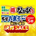 11/6(木)のおすすめ情報♪本日ポイント2倍!~年に一度の「決算セール」開催!!~日頃のご愛顧に感謝を込めて~全品売り切れ御免!!